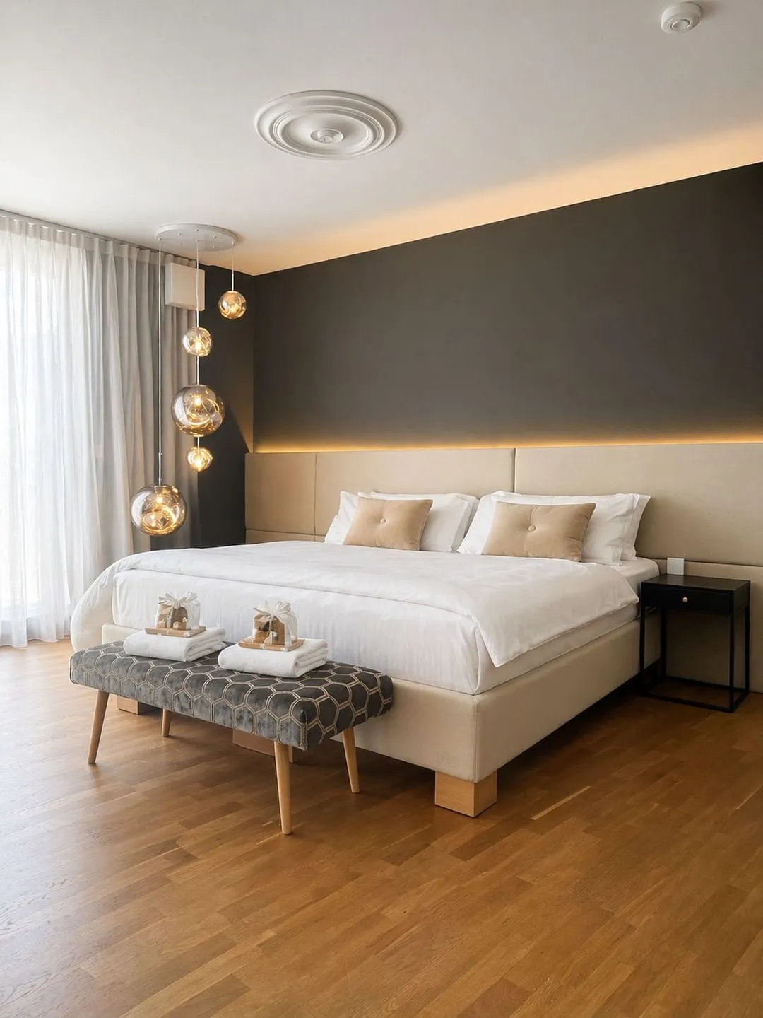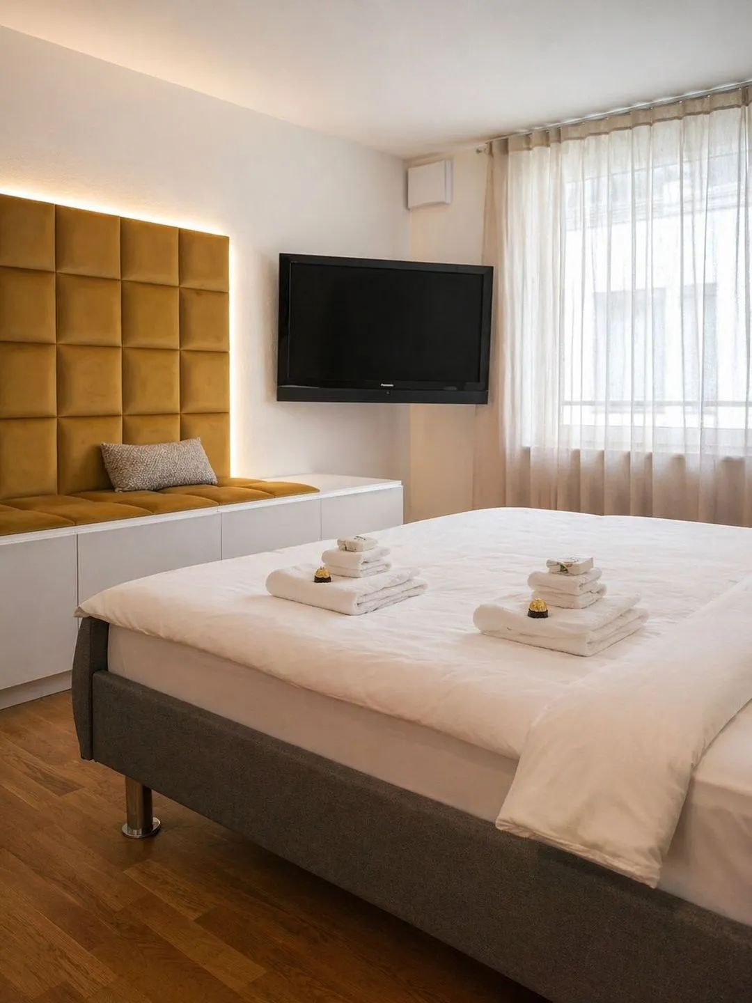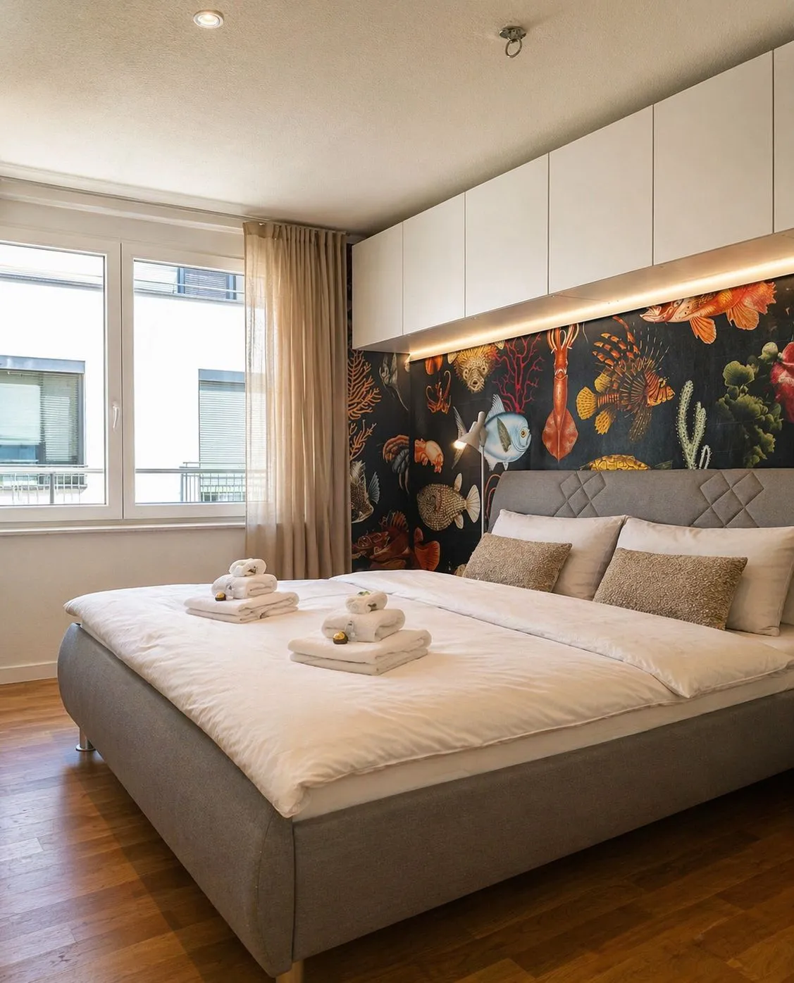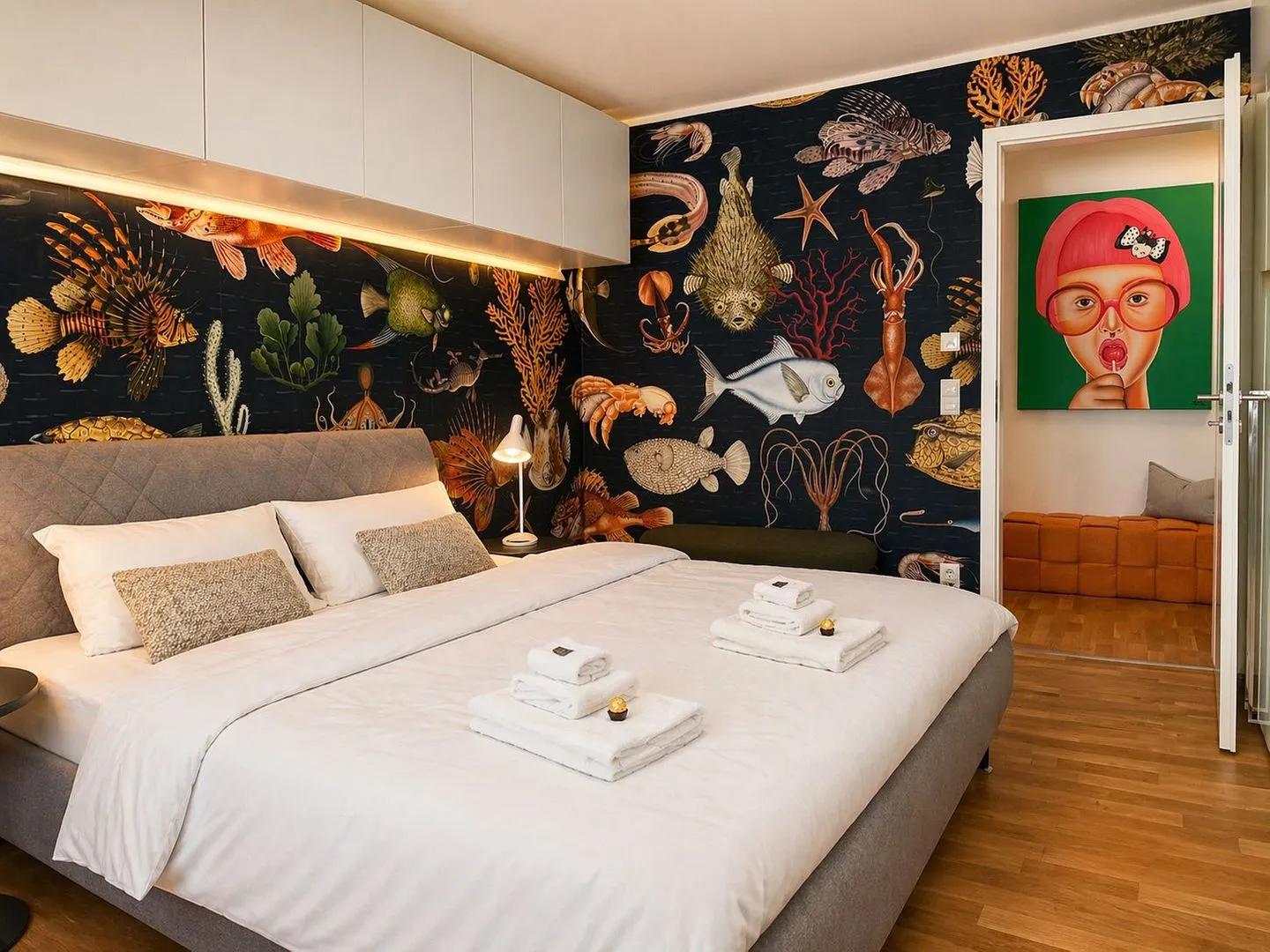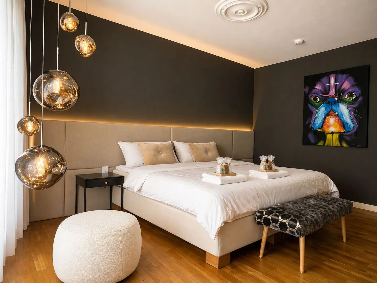 Die Wohnung begeistert mit einem außergewöhnlich stilvollen Ambiente: Hochwertige Designermöbel und edel abgestimmte Beleuchtung schaffen eine warme, elegante Atmosphäre, in der man sich vom ersten Moment an wohlfühlt. Große, helle Räume und die hochwertige Ausstattung machen Ihren Aufenthalt zu einem echten Genuss ideal für Gäste, die das Besondere suchen.